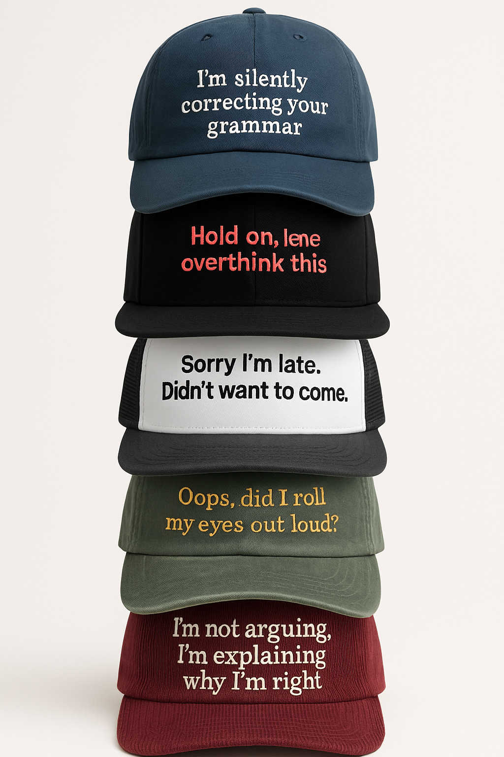 These aren't your wholesome baseball caps. Every sarcastic hat in this collection celebrates authenticity, dark humor, and the refusal to take life too seriously. Perfect for sunny days, bad moods, or just existing in public with maximum attitude.